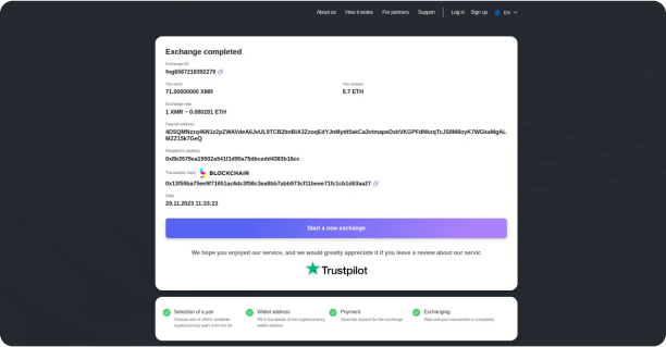 That's all! Congratulations! You have successfully exchanged your funds. If you still have questions or suggestions, feel free to contact our support. We are always glad to help you.
